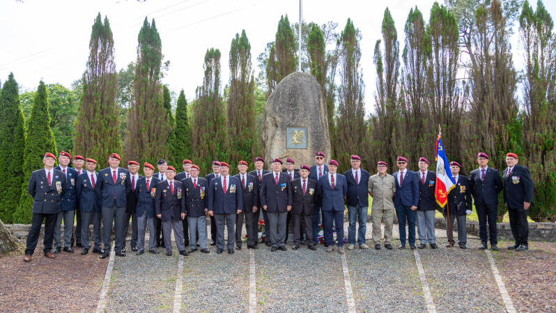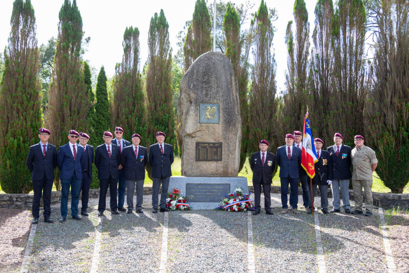 Après avoir assisté à la cérémonie présidée par Mr le Président de la République à Plumelec, nous nous sommes rendus au monument de la Résistance à Serent. Présence habituelle des autorités civiles et militaires, et du porte-drapeau national de l'UNP. Nous avons ensuite accompagné à la stèle de la 1ere DBCCP un détachement du 1er RPIMa et les amicalistes de l'association "Qui Ose Gagne".